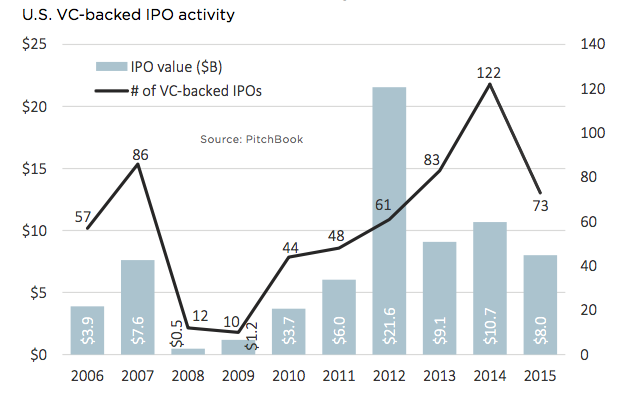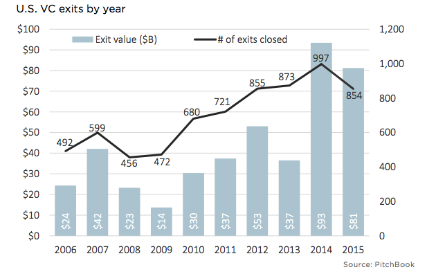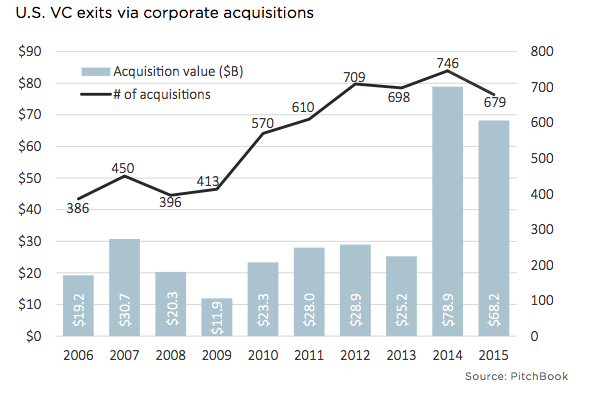 Логичный вопрос — какого характера эти эксзиты? Может IPO? Нет. IPO в американском венчурном рынке вещь нечастая как оказывается.