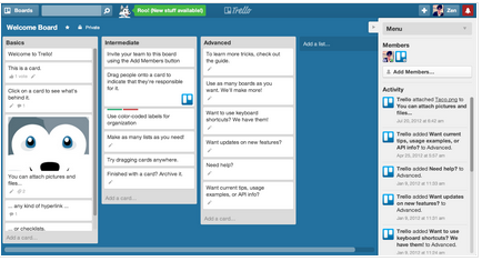 13) Trello is a collaboration tool that organizes your projects into boards. In one glance, Trello tells you what’s being worked on, who’s working on what, and where something is in a process.