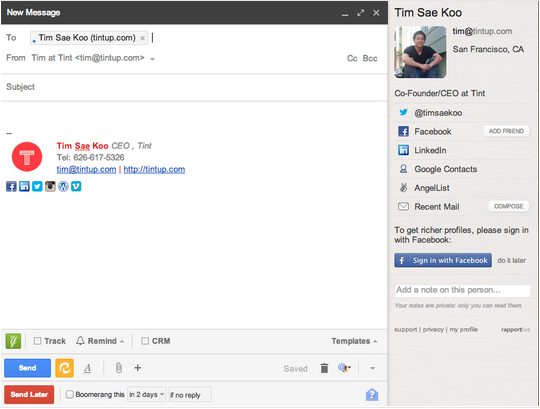 4) Rapportive is a Gmail plugin to vet who you’re communicating with and if they are a decision maker you need to close.