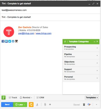 As Tint’s first hire, my main goal was to bring in 100k by the end of 2013. With the tools listed below, I was able to bring in $128,914 by NYE of 2013. Now that we are on pace to hitting 2MM by 2014, my next goal is to streamline our sales team to set our sales vision higher: How to hit 20MM. Now, I am firm believer of the saying “under commit, over deliver” but I also believe in setting high expectations that even if I’m shy of the goal, I’ll still be happy with the results.