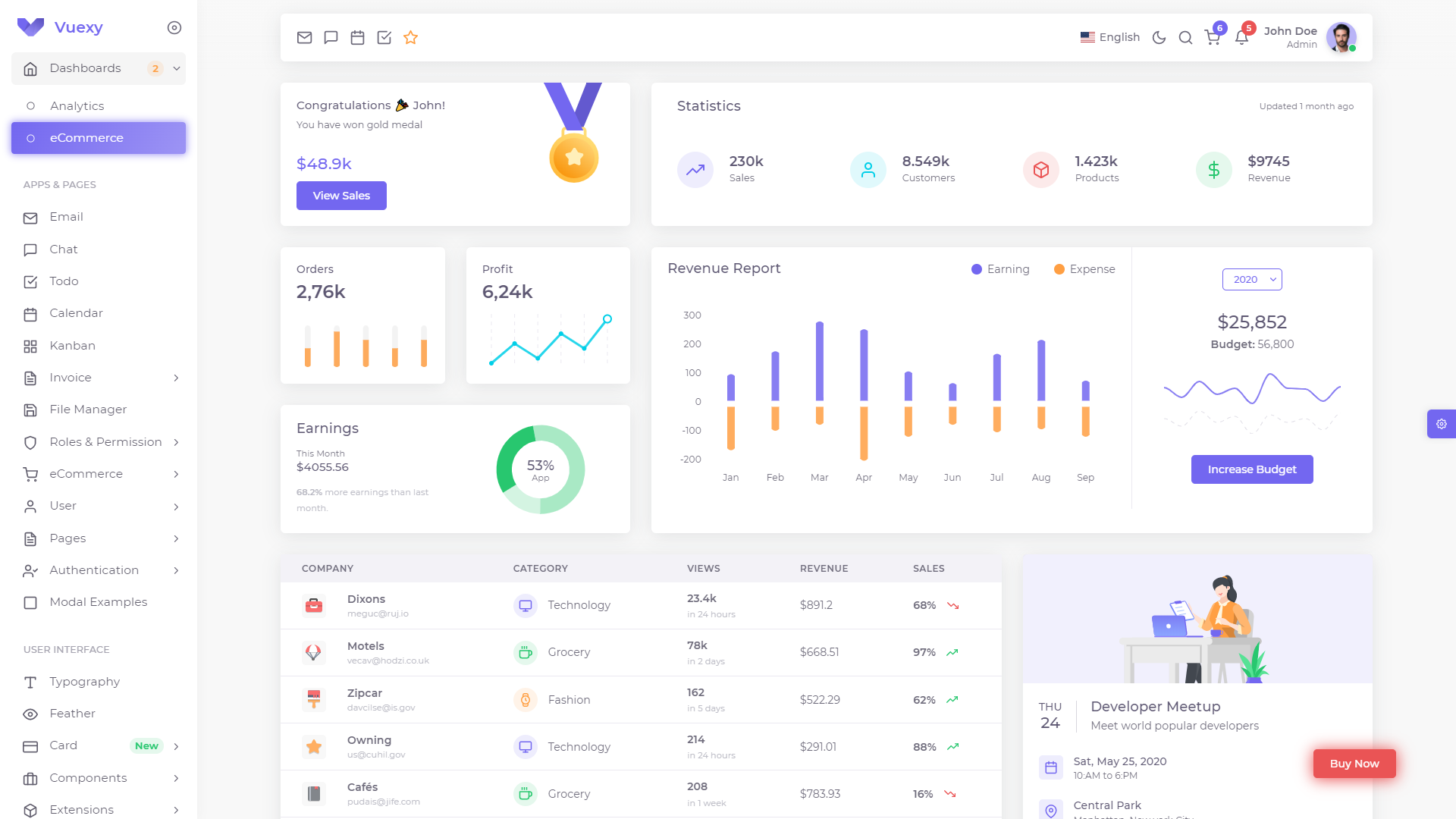 Credit: Vuexy VueJS Admin Template by Pixinvent