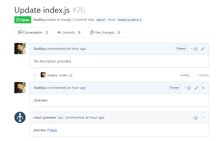 itaditya/react-preview_a GitHub App built with probot that generates preview links for react based projects. — itaditya/react-preview_github.com