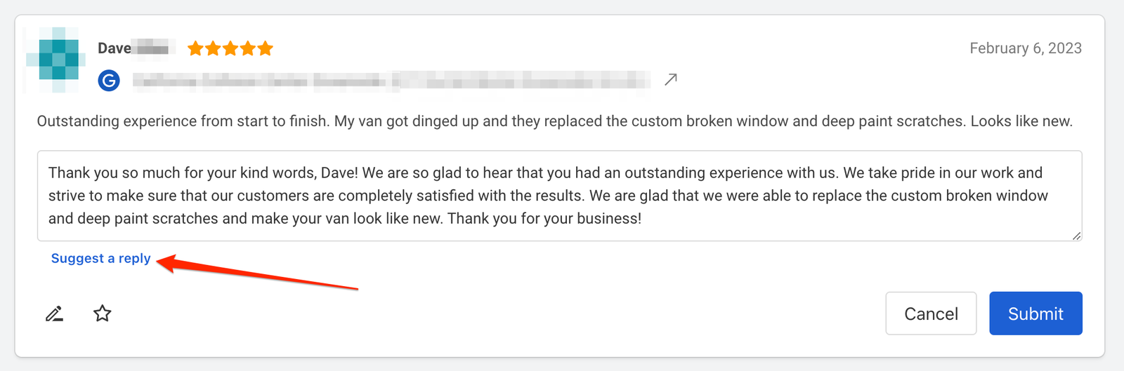 You can even click the “Suggest a reply” button to get AI-suggested replies to your reviews: