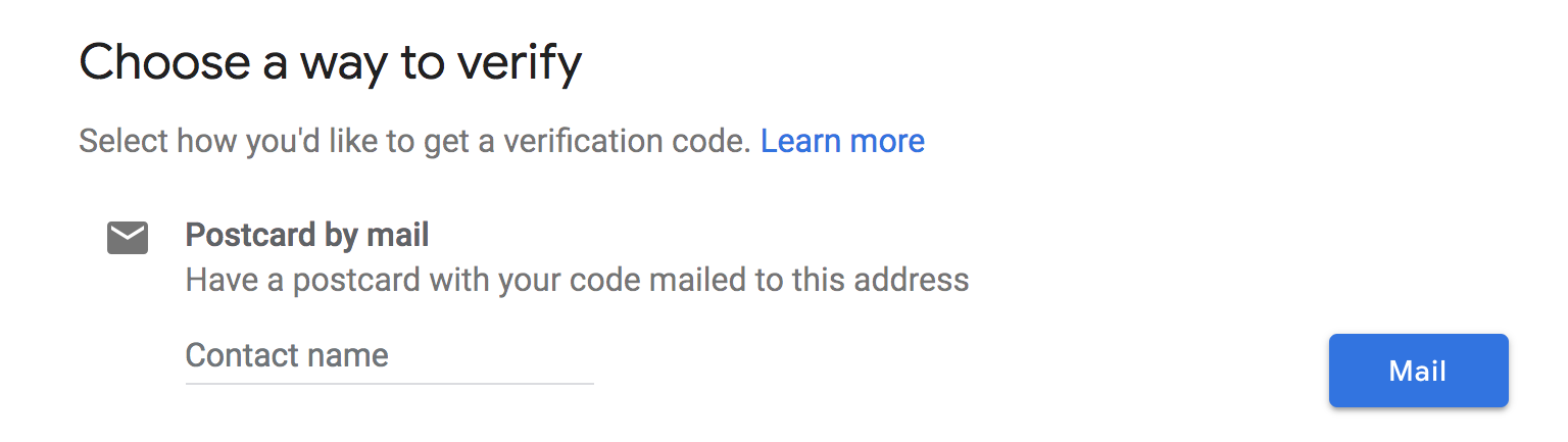 Then, you will have to verify your account by submitting a code that is mailed to your business address via physical postcard. This step is necessary to unlock all Google My Business features.