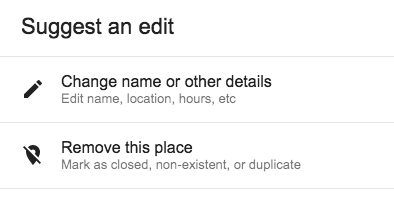 When someone clicks on “Suggest an edit”, it gives them the opportunity to make some pretty dramatic changes to your listing.