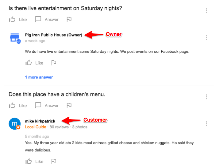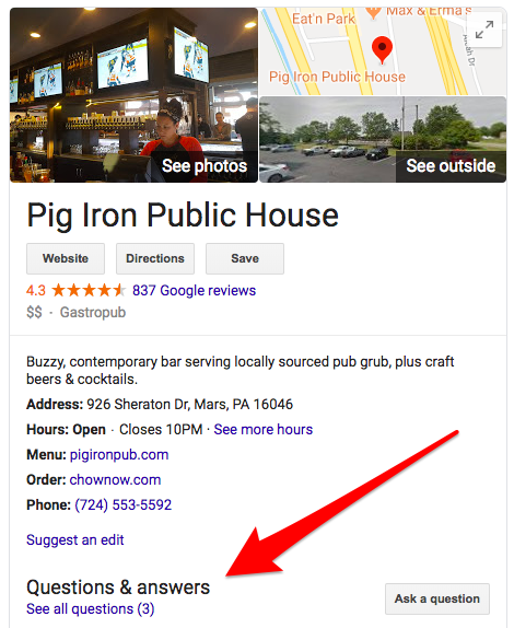 Similar to Reviews, Google My Business allows people to ask questions about the business that anyone can view.