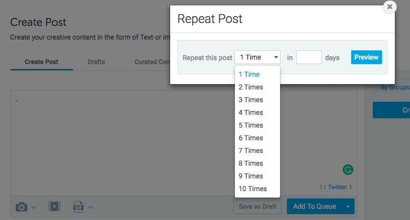 Social Pilot allows you to schedule your posts to be repeated up to 10 times, and you can choose how many days you want in between each repeating post.