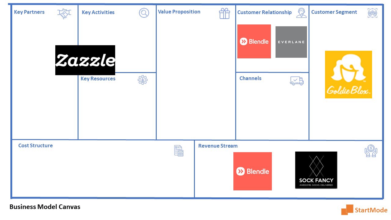 Zazzle is an online marketplace that allows designers and customers to create their own products with independent manufacturers (clothing, posters, etc.), as well as use images from participating companies. In the creative industry, Zazzle is disrupting the process new products are developed. This process is a combination of two consumer trends called co-creation (between customers, partners and competitors) and open innovation. One can say that Zazzle disrupted the key resources, key partners and key activities segment of the business model canvas simultaneously.