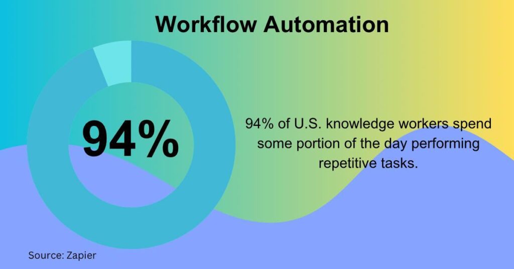 In fact, Zapier’s report states that 94% of the surveyed U.S. knowledge workers spend some portion of the day performing repetitive, time-consuming work, including manual tasks.