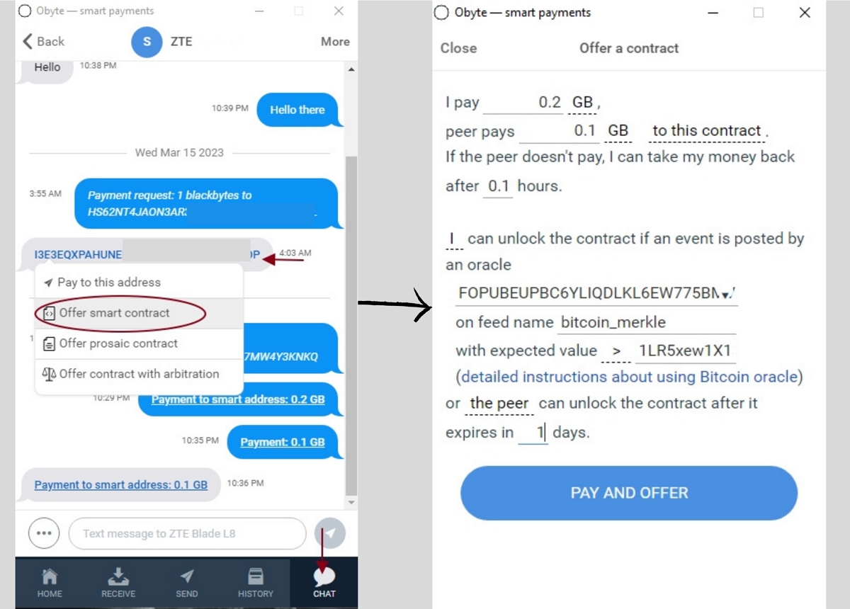 Conditional payments don’t have any additional fees, and they’re a game-changer in the world of transactions. Imagine being able to set specific conditions for a payment to be executed—like a digital version of "if-then" statements. With Obyte's conditional payments feature, powered by human-readable smart contracts, you can do just that.