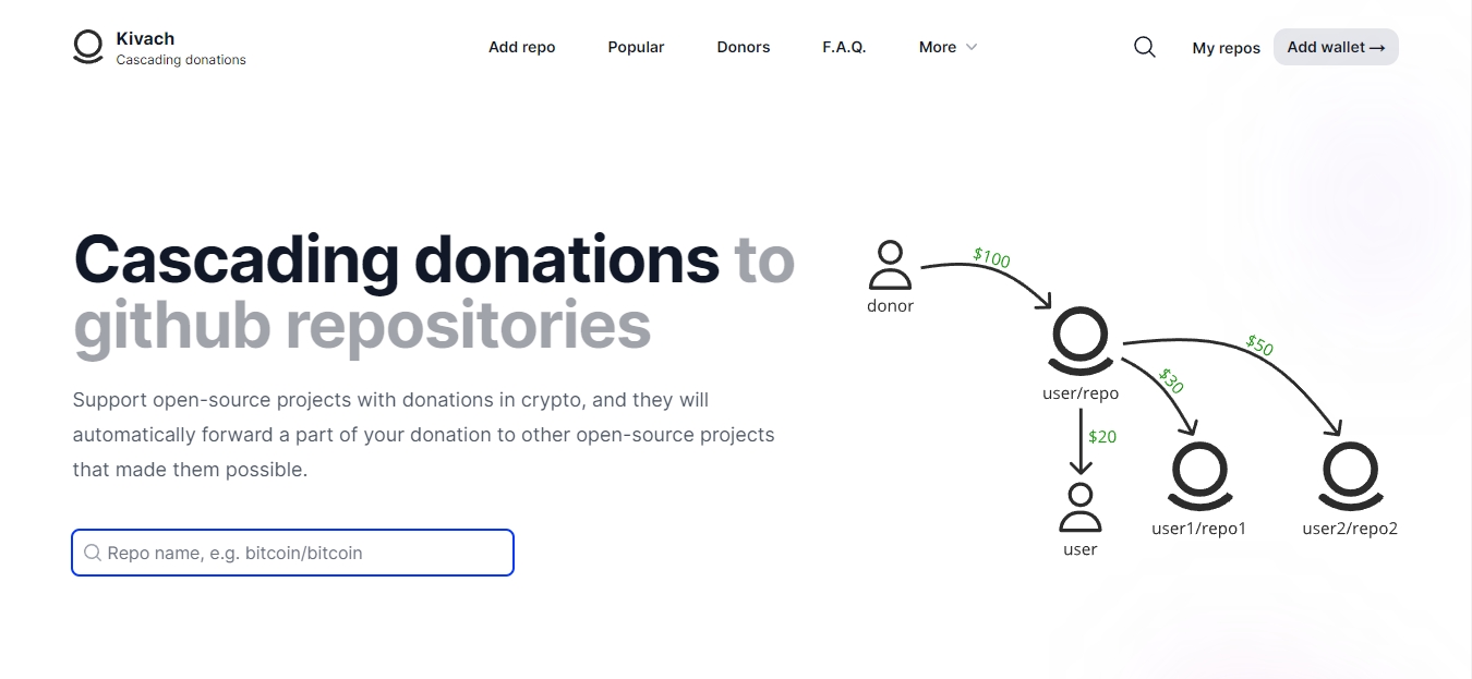 Kivach offers a unique solution by enabling cascading donations for open-source developers on GitHub, allowing recipients to redistribute a portion or the entirety of received donations to other deserving projects. This innovative approach ensures that funds flow efficiently across multiple repositories and collaborators, amplifying the impact of each contribution.