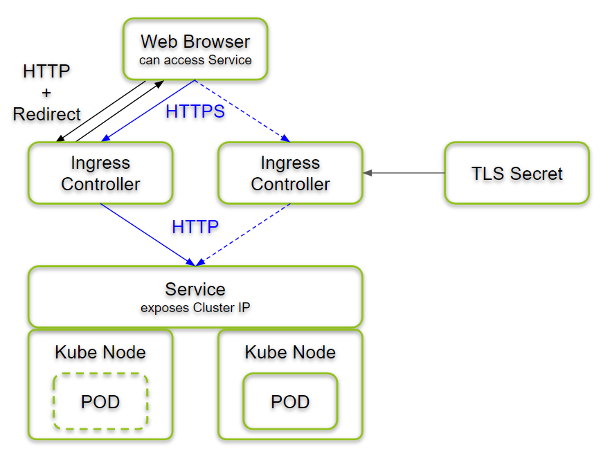 - Ingress controller configuration. Check your Ingress controller settings to ensure it properly handles HTTPS traffic and performs redirects from HTTP to HTTPS if necessary.
