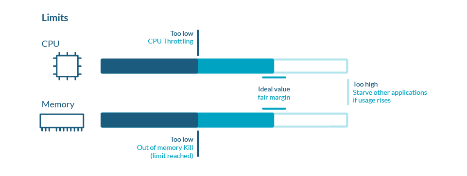 Containers running inside Kubernetes pods usually have limits on resource consumption, both in terms of memory and CPU time. Exceeding these limits can lead to undesirable consequences. For example, errors in configuring CPU time limits can cause throttling, limiting the available CPU time for the container. If you promise an application more memory than you have on a node, Kubernetes will evict the lowest-priority pods to free up resources under increasing load.
