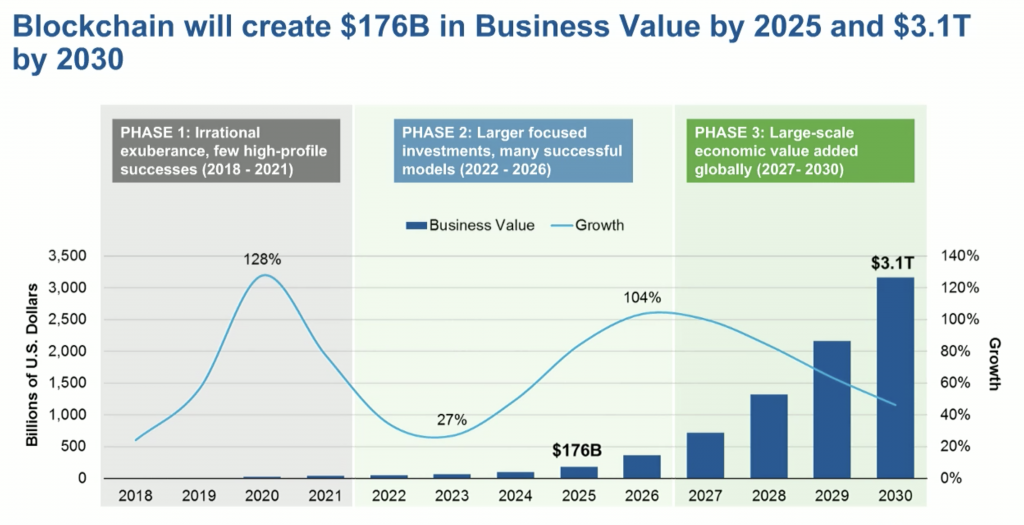 Blockchain will create over $176 billion of business value by the year 2025, and keep on increasing till $3.1 trillion by 2030.