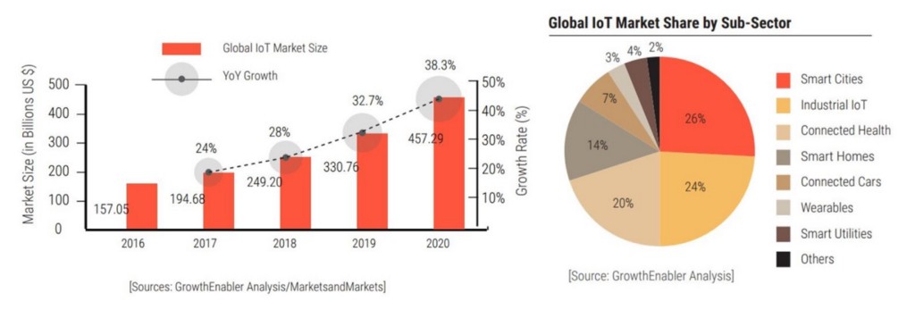 IoT market will grow to $457 billion by 2020 from $157 billion in 2016.