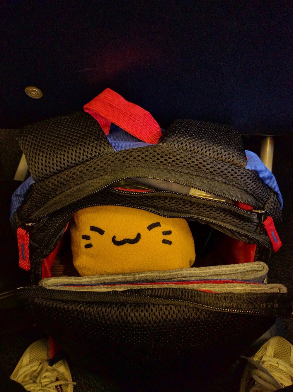 – He was too big to come travelling with us so he currently lives with James’ mum in the Isle of Man. Before we left James knew how sad I was to leave Colin and had a miniature version made. We named him Coco and he is our travel mascot. He always rides shotgun in my daypack with me.
