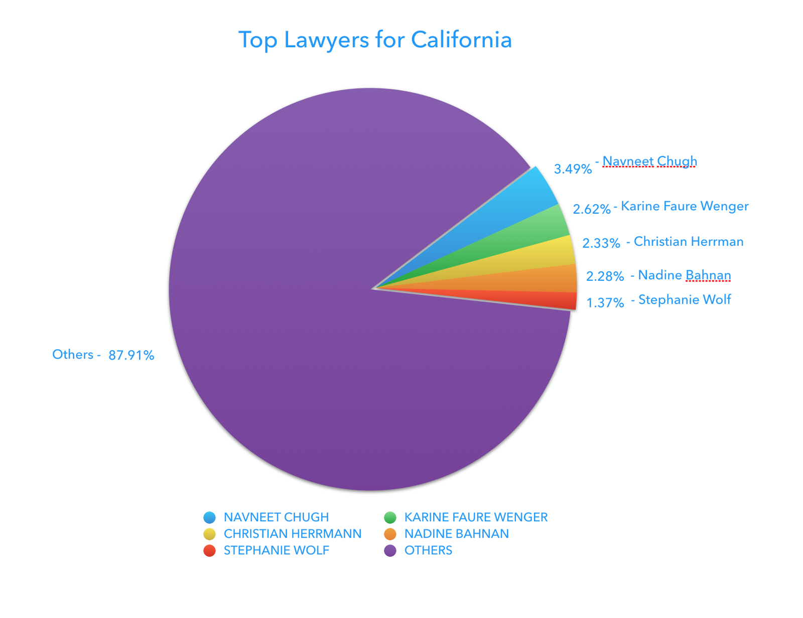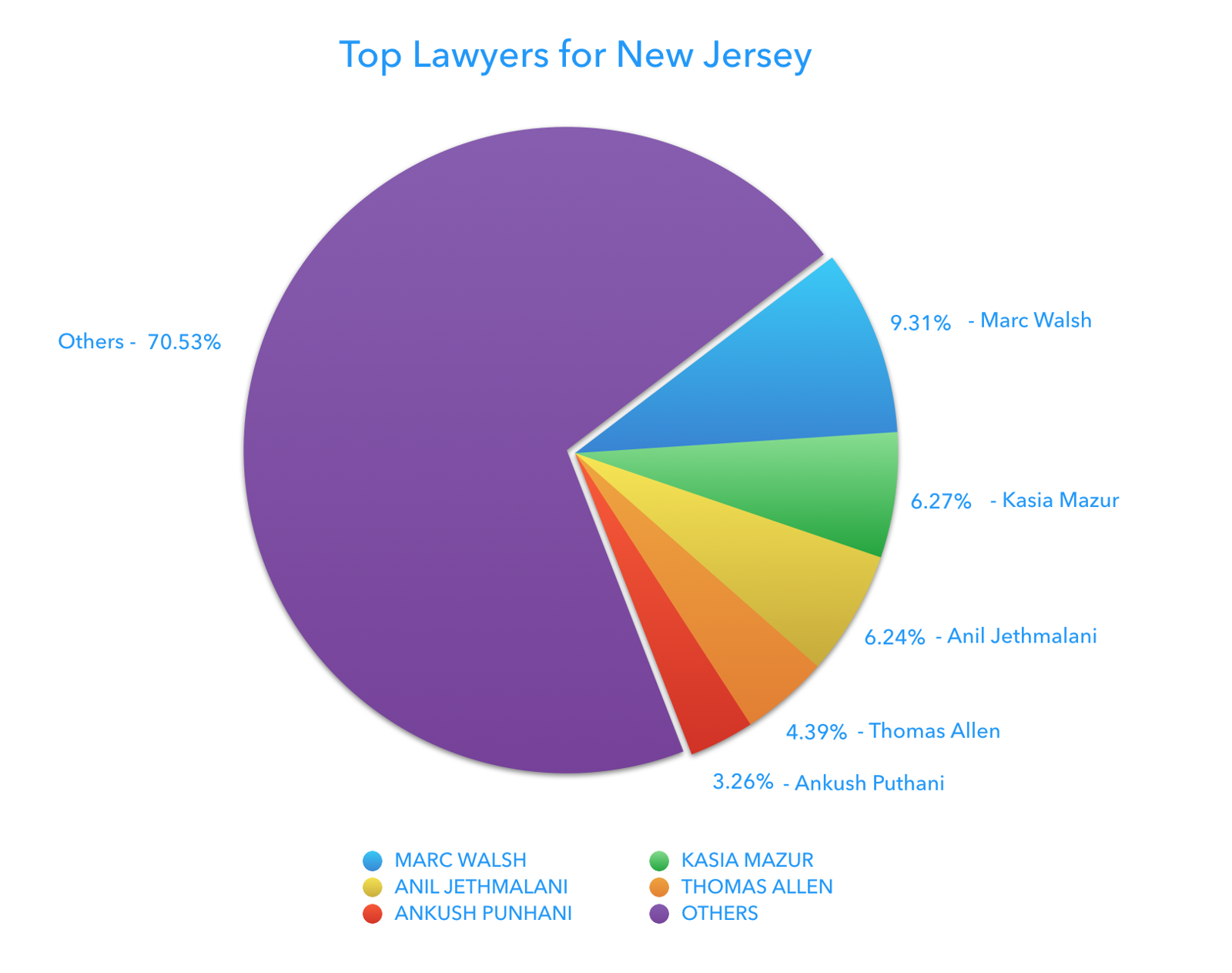If the top 3 states are filing so many cases, it is interesting to see if a lot of lawyers are filing these applications or only a few lawyers are very active.