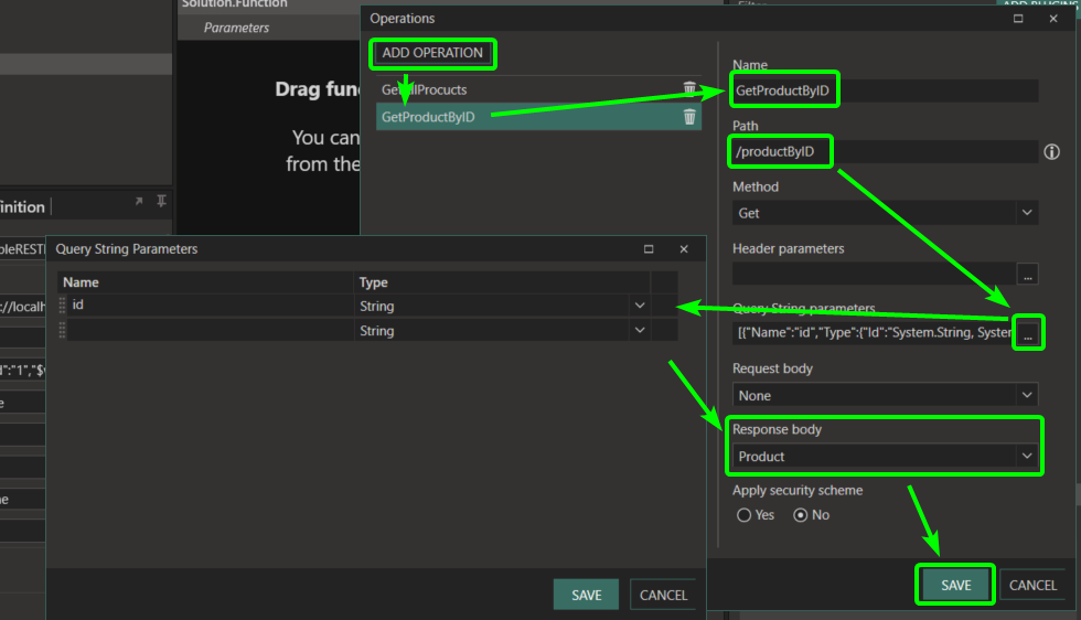 7. To create the GetProductByID event do the following