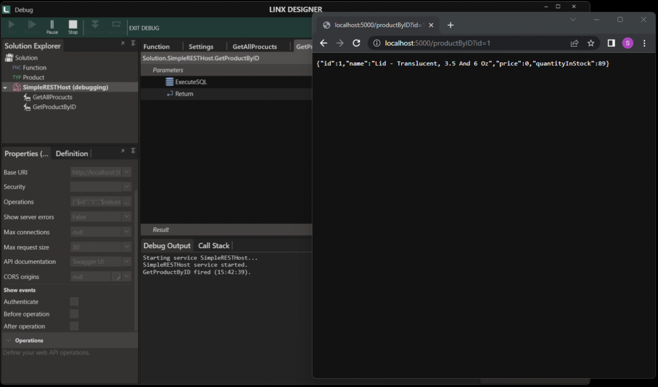 Linx will be used to create and host the API. As part of Linx, there is a REST plugin that allows you to host and consume REST APIs. For this guide, you will create an API using the Simple REST Host service. This service will allow you to create an API via a wizard.