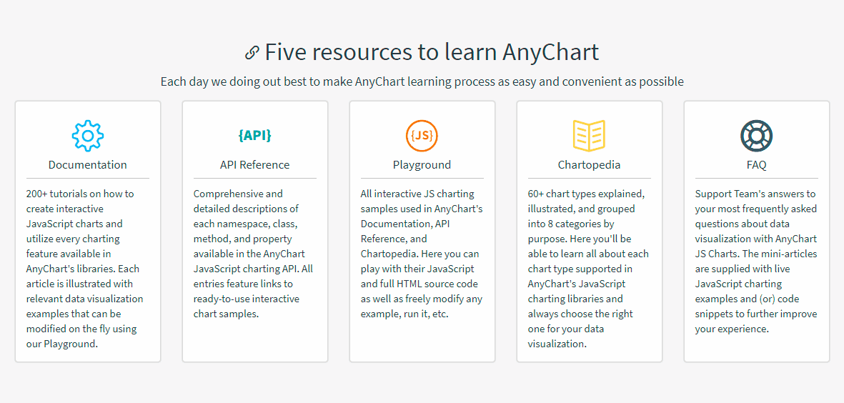 AnyChart is simple to configure, integrate and customize. We have uniquely comprehensive and detailed chart documentation and API reference, countless JS chart demos including ready-to-use dashboard samples, plugins, and technical integration templates for all major stacks.