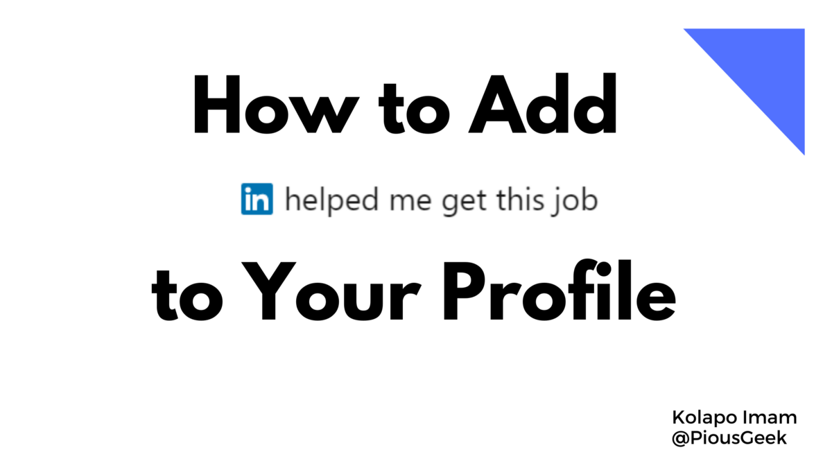 I feel this new feature by LinkedIn is to reinstate its mission of connecting professionals to job opportunities and offering a health space for these professionals to connect. I wanted to show the badge on my profile so bad cause I got my current job via LinkedIn, so I continued my research on finding the how-tos.