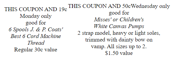 1 A department store that was anxious to increase its trade on Mondays and Wednesdays included the following coupons in its circular advertisement one week: