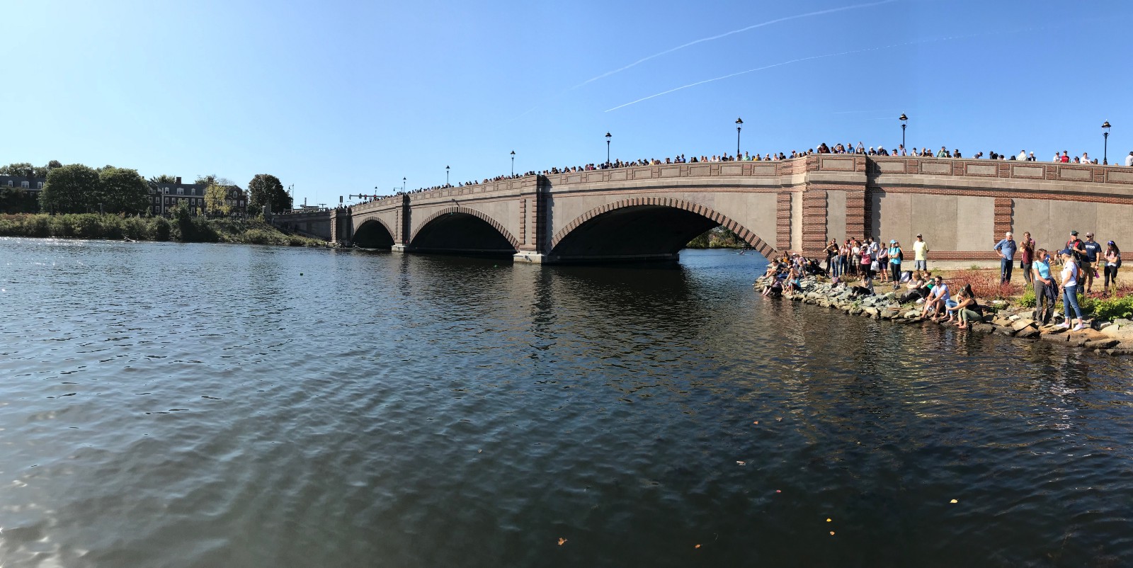 The morning was mostly uneventful — there was minimal chatter over the radio and only one or two shells capsized (neither of them close to our launch). The main problems we had were people either impacting the bridge directly or getting forced into the side of the bridge by other shells. By lunch we had to only respond to one shell capsizing on the other side of the bridge; the rower was able to get back in their shell and resume the race.