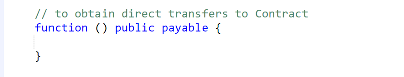 What if someone wants to donate anonymously, without making the lists? Or what is a person wants to transfer a small amount which can’t get through the limits of donation collection? Then you need add a special function that will allow one to transfer directly to the smart contract.