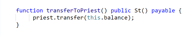 Next, we create function for withdrawing funds from the CryptoChruch smart contract directly to the priest account: