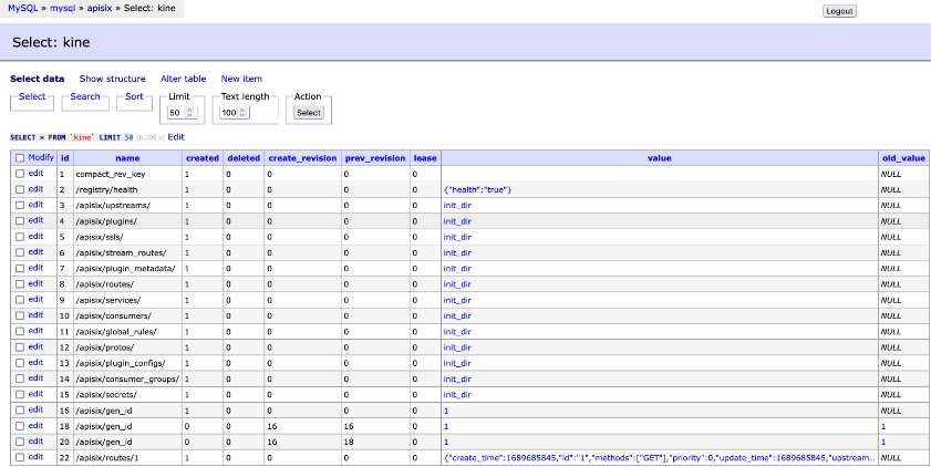 Yet, using kine directly is a non-trivial effort. Fortunately, api7, the company that gave Apache APISIX to the Apache Software Foundation, provides a component already focused on APISIX usage.