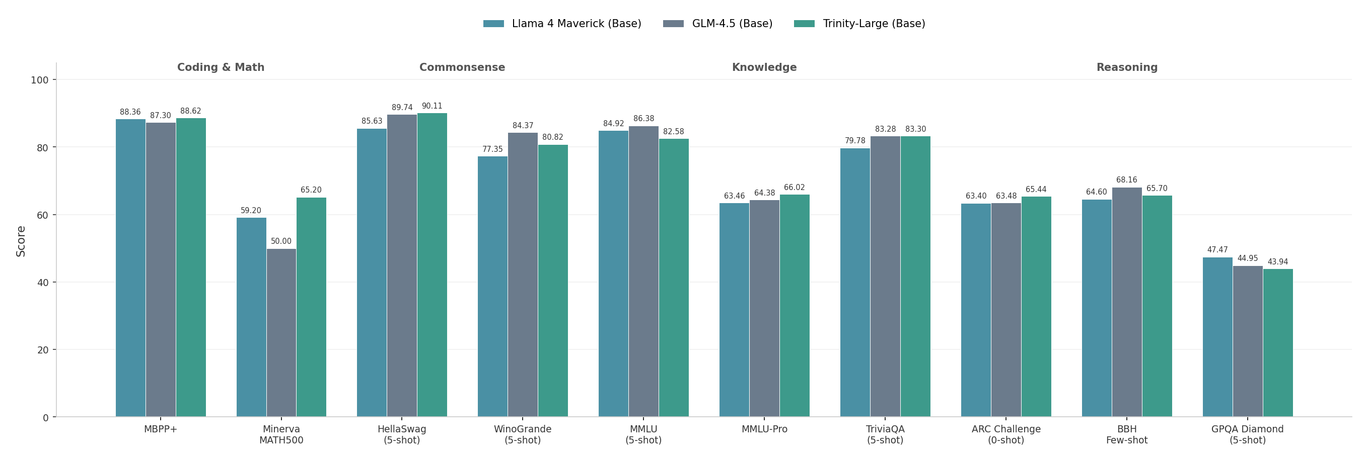 Trinity Large outperforms comparable dense models on standard benchmarks. This is crucial because it proves the sparse approach isn't a trade-off where you sacrifice quality for efficiency. You actually get better language models. The 400-billion-parameter model with 13 billion activated outperforms models that have fewer total parameters but activate all of them. The routing mechanism learns genuinely useful specialization.