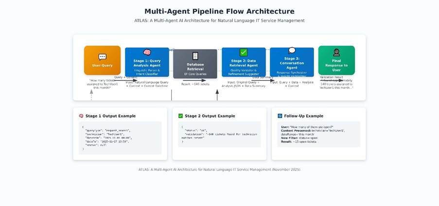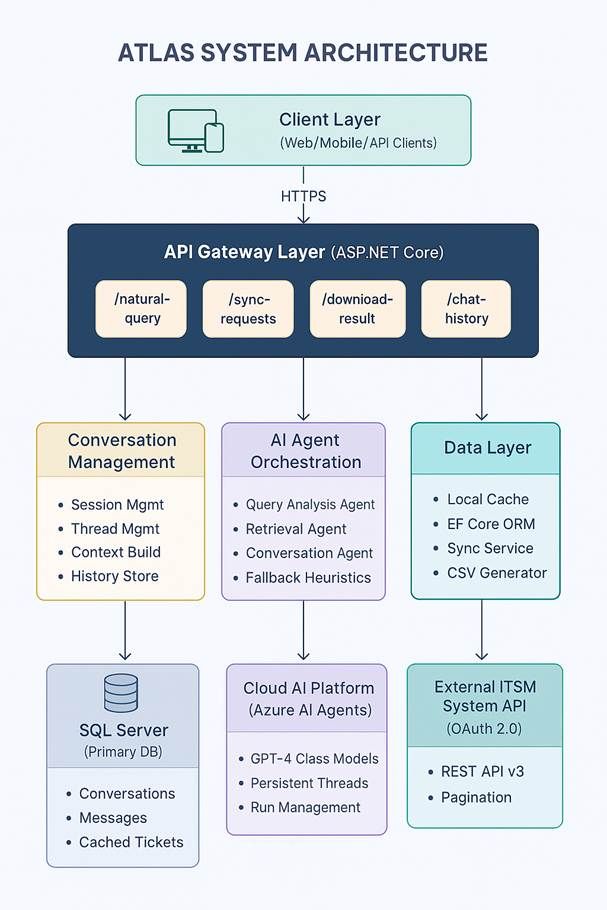 This whitepaper presents ATLAS, a conceptual architecture for a natural language interface to IT Service Management (ITSM) systems, designed for mid-to-large enterprise environments. ATLAS employs a novel multi-agent AI architecture that transforms unstructured natural language queries into actionable insights from service desk data.