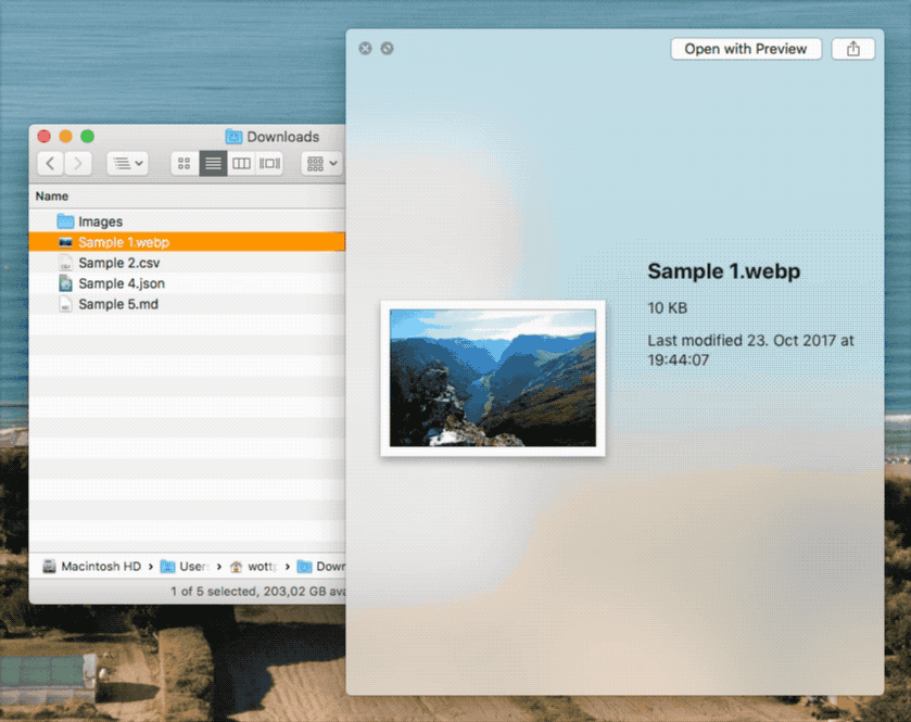 QuickLook is nice but it has some limitations when it comes to some more advanced file-types like Markdown, WebP, JSON or even CSV. By executing the following command in your Terminal all of this becomes a part of the past.