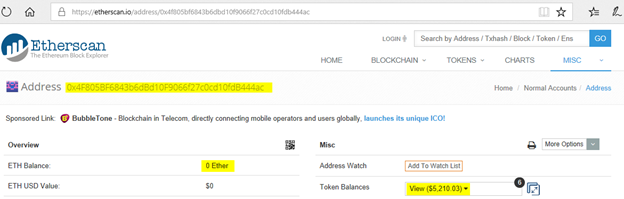 “Ooh-La-La! Although there’s no Ether in the wallet, it holds more than $5000 worth of other Tokens!”
