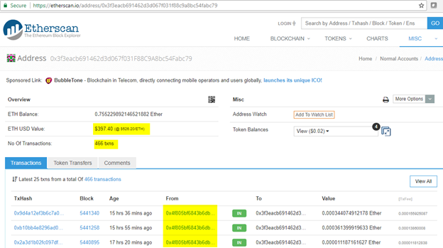 Viewing this address’ history reveals that the scam had earned its creator a nice sum of almost $400