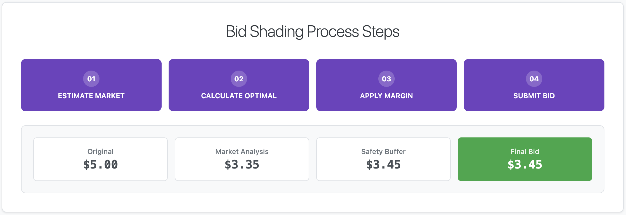 Bid shading transforms your bidding strategy from "bid what it's worth" to "bid what it takes to win." This fundamental shift requires understanding market dynamics, competitor behavior, and auction-specific factors that influence the optimal bid amount.