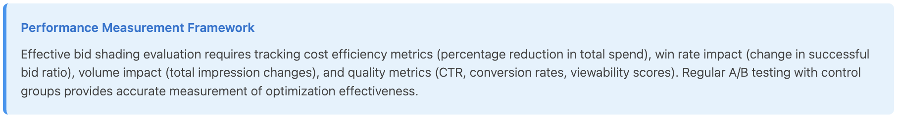 Insufficient monitoring during initial implementation periods can obscure important performance trends and optimization opportunities. Regular performance reviews, competitive analysis, and seasonal adjustment planning ensure bid shading systems continue delivering optimal results as market conditions evolve.