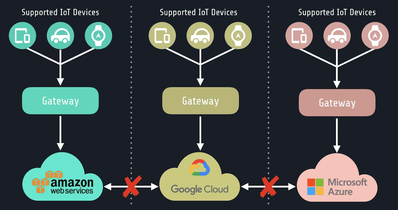 Due to heavy competition, IoT platforms have no incentive to share data / market share with their competitors. In addition, no secure mechanism exists to seamlessly share data in real-time across IoT / Cloud platforms. The lack of urgency and means to address interoperability is a massive bottleneck on innovation within the IoT space, and will continue to fragment the IoT landscape into monolithic data silos. Without a new approach that can enable data / device sharing and interoperability, we will never see the full potential of IoT.