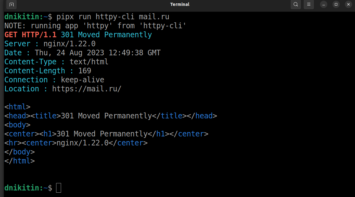 In the console, run the following command: $ pipx run httpy-cli mail.ru