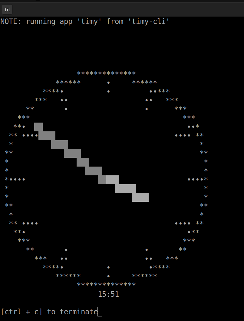 - A utility to display a pseudo-graphic clock in the console with the ability to set a timy-cli timer