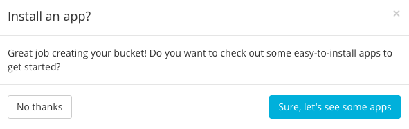 Once you’ve signed up and named your bucket, you’ll be prompted to start from scratch or “see some apps”. For this blog I simply clicked the right button to “see some apps” so that I could begin the installation process for the React Chat App.