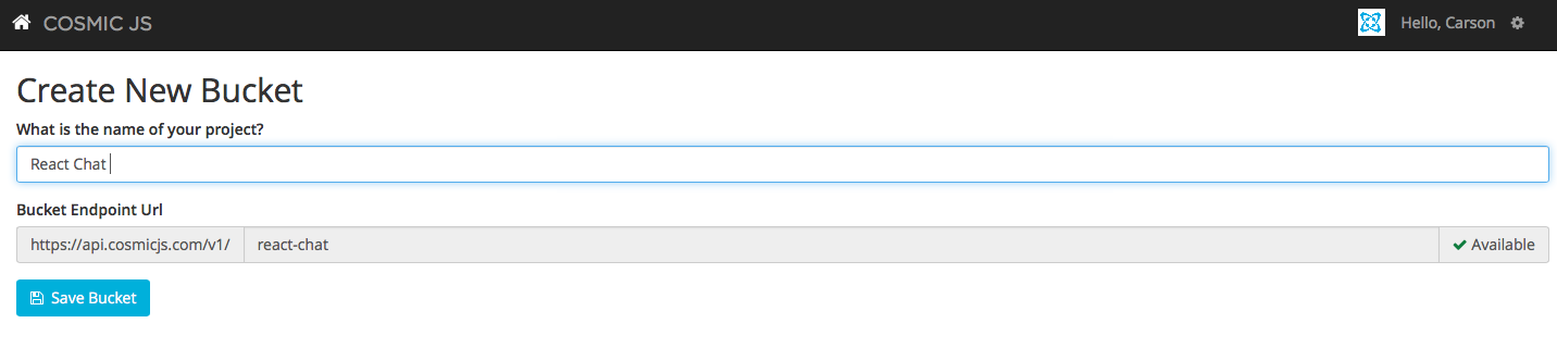 Your bucket’s name is the name of your website, project, client or web application that you are building. I named mine “React Chat” to remain concise for our example blog.
