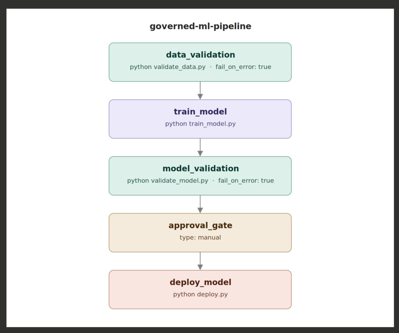 In this context, fairness constraints are practical instead of being a theoretical concern. If the model doesn't meet the threshold, the pipeline fails, and the model can't be deployed. This exemplifies governance-as-code directly.