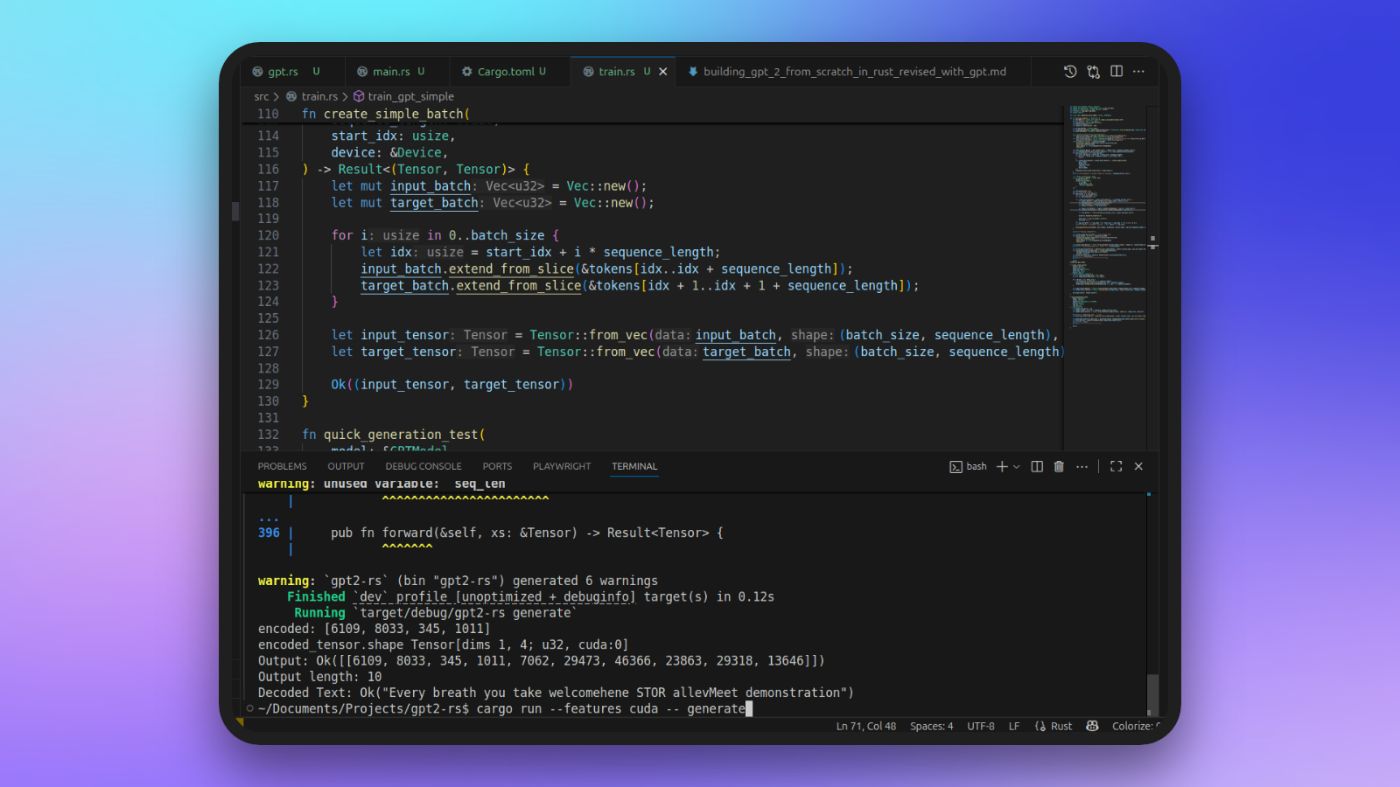 So when I say I “built GPT-2 from scratch,” I don’t mean I invented anything new. What I actually did was implement the GPT-2 architecture from OpenAI’s 2019 paper, using Rust on my Ubuntu desktop, and eventually Candle, after a bit of trial and error—all fueled by curiosity and weekend tinkering.