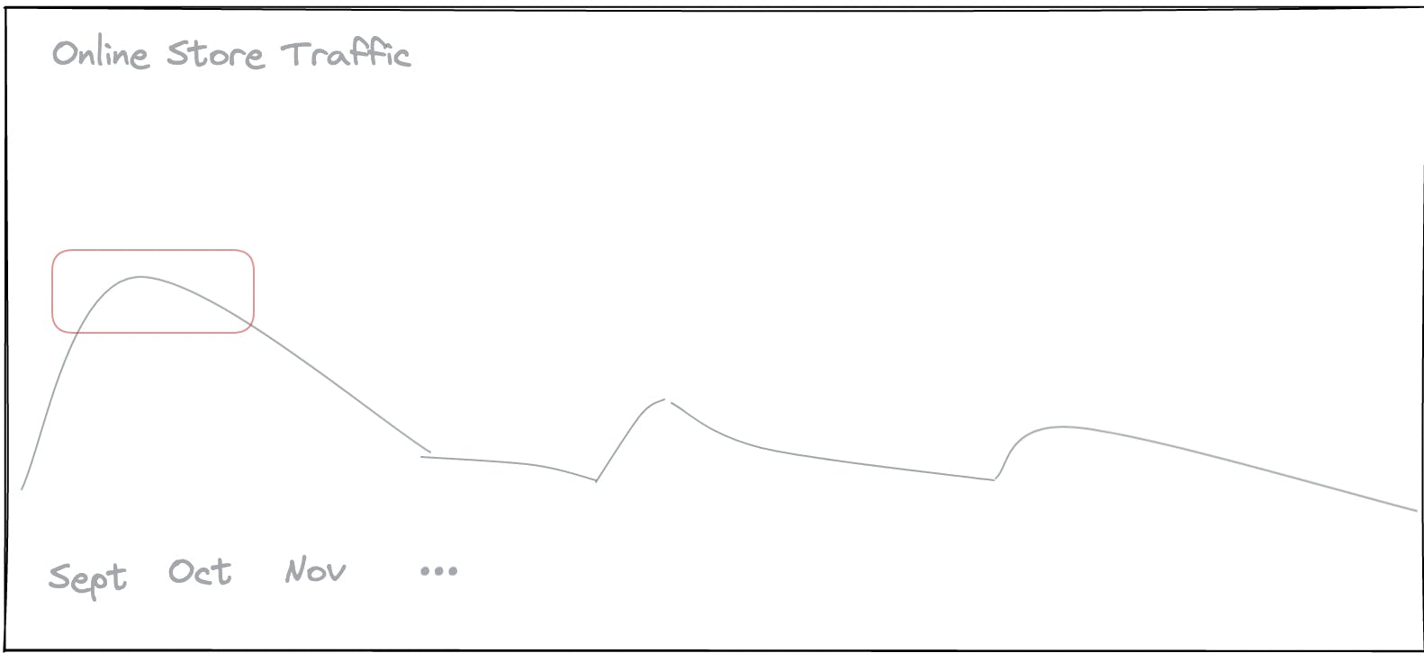 It was the interview day. I prepared by watching example cases on Youtube. There were 4-5 employees (I later realized that most of them were managers) and 8-10 candidates in the room. We were given a 2-page case, on the first page there were some graphs and on the second page, there was a description and a question at the end. I can't remember the graphs exactly, but one of them was something like the below: