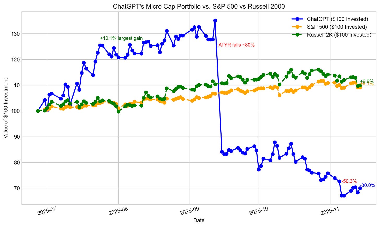 Hey guys! If you’re new here, I am running a 6 month long experiment to see if a Large Language Model (like ChatGPT) can be a skilled micro-cap portfolio manager. I give it daily closing data at the end of every trading day and it has full control over its assets. Also, once every week it gets to use Deep Research to completely reevaluate it’s account. Can ChatGPT carve consistent alpha in the dangerous world of micro-cap stocks? Let’s find out.