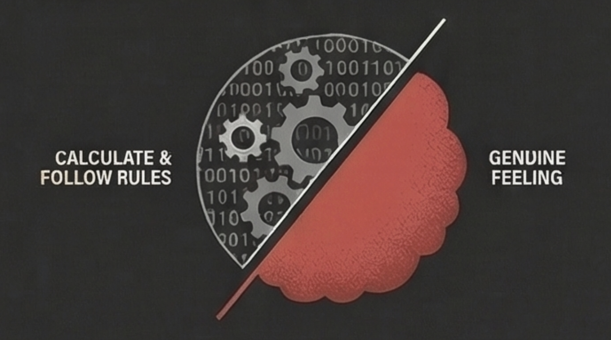 I mean, that’s the rule, isn’t it? Machines calculate. Humans feel. Philosophy has been drawing that line for centuries. Descartes said thinking proves existence. Chalmers calls consciousness the “hard problem.” Searle built the Chinese Room to show that understanding isn’t just symbol manipulation.