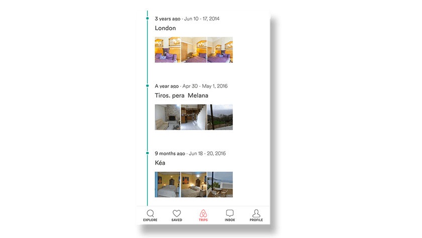Keeping track of a user’s actions (history) is also a great way to create a sense of ownership. Letting the user see or track his previous actions or previous usage of the app subconsciously gives the feeling that the app knows him well. That’s a really strong feeling. Below you can see an example of how Airbnb tracks previous trips you took through the platform.