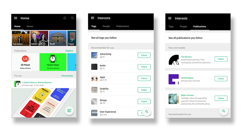 All the major social, news, video or blog networks like Facebook, Twitter, Medium and Youtube are using this approach, too. Adjusting your personal timeline with people or stories you want to follow is one of the main reasons you find yourself coming back to that specific app, multliple times a day.