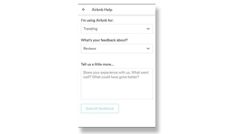Major apps have always provided users with a way to leave direct feedback on the app. Airbnb, for example, has a section dedicated to user feedback on a variety of different topics, all in an effort to improve the experience and usage of the app.